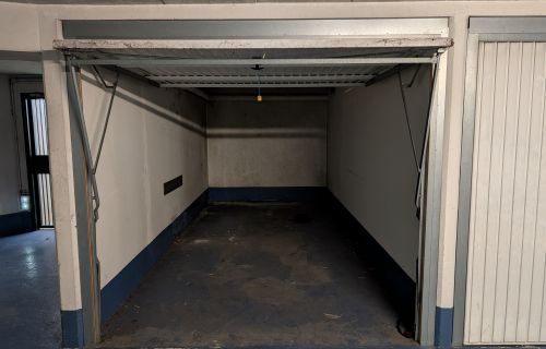 Box fermé situé dans le parking au sous-sol d'une résidence privée.