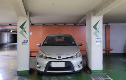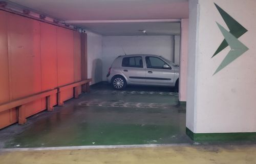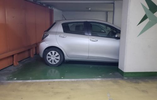 Place de parking au deuxième sous-sol, accès sécurisé avec badge et portail. Deux poteaux entourent la place, personne ne peut se garer à proximité immédiate.