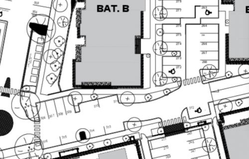 Place de stationnement extérieure dans une résidence neuve et sécurisée avec portail et badge.